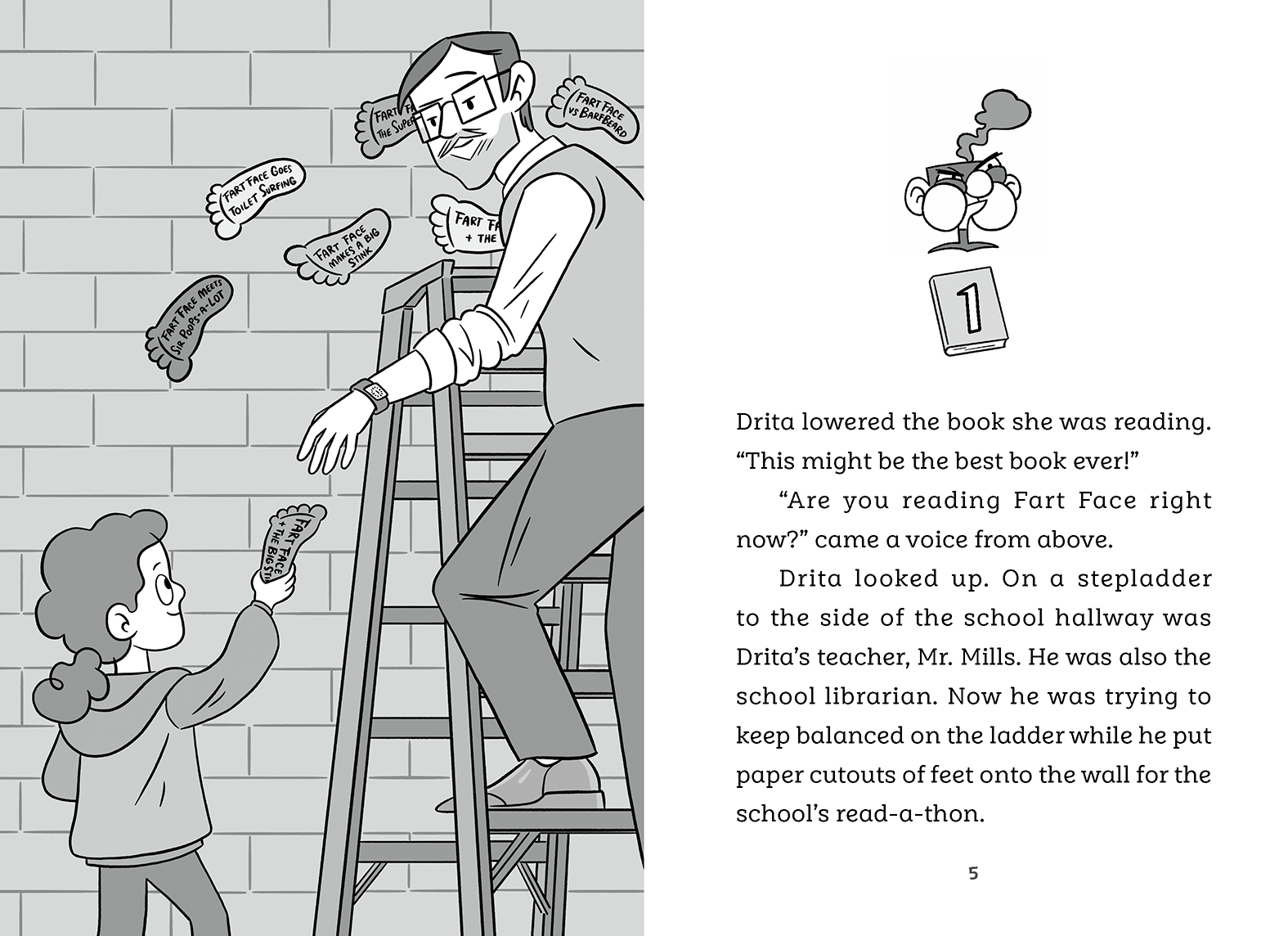 She and her fellow library helper, Josh, even start the Fart Face Fan Club. But when parents get a whiff of the books’ “”toilet talk,”” they wonder if the books are appropriate for their children. In response, the school decides to take the Fart Face books off the library shelves. Drita and Josh know this isn’t fair, so they resolve to save their favorite series. Drita hatches a plan to prove that the Fart Face books offer more than just fart jokes—they encourage scientific learning and a love of reading.