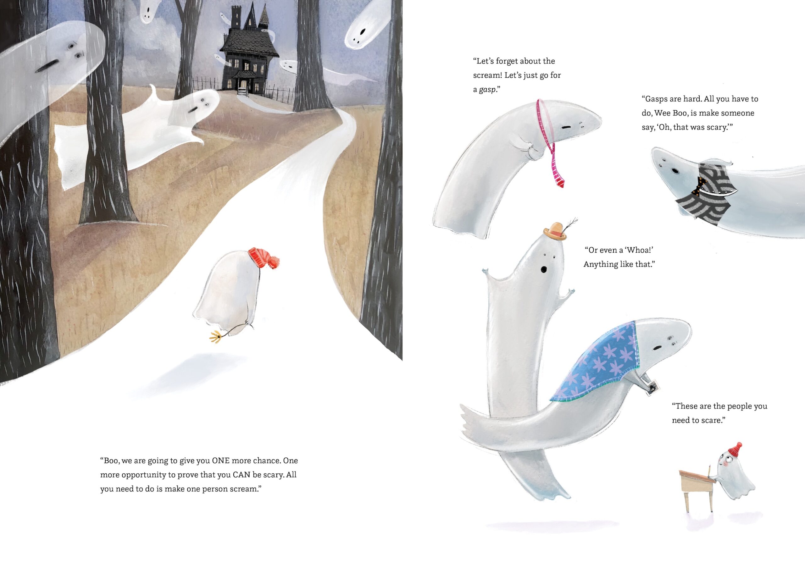 Wee Boo is a ghost who wants nothing more than to earn her haunting license like all the other accredited ghosts. The problem? She’s far too cute to scare anyone! She’s given one last chance, with extraordinarily low standards: Boo doesn’t need to make anyone scream or gasp or shudder, she just needs one “whoa” to earn her place as a certified ghost. But she’s running out of chances and her final haunting is not going well—that is until she meets a baby. When Boo makes the baby laugh, she realizes something: although she’s terrible as a scary ghost, she might just make an outstanding imaginary friend. And a baby laughing in a crib at an invisible friend might just be enough to spook someone after all—the baby’s parents.