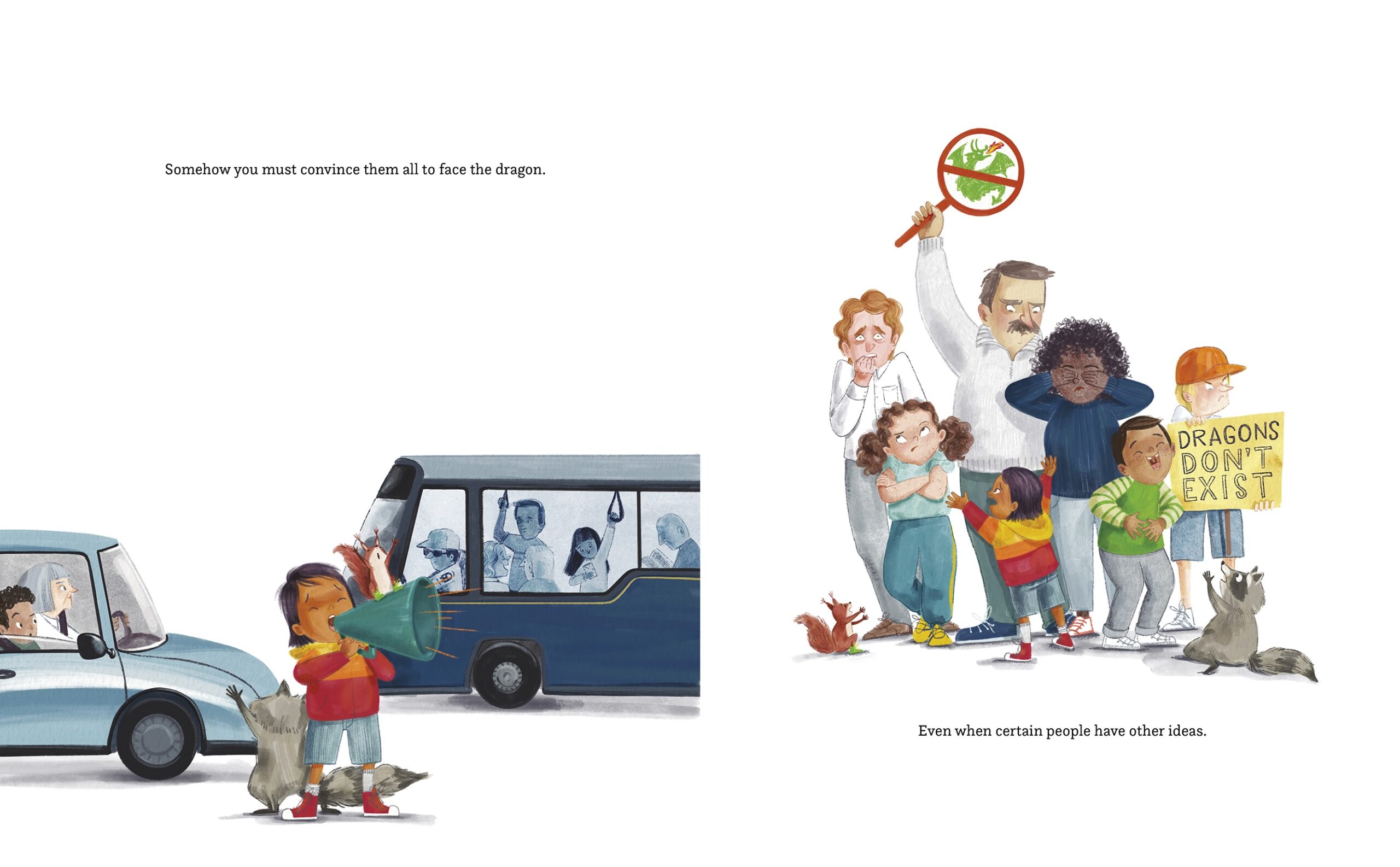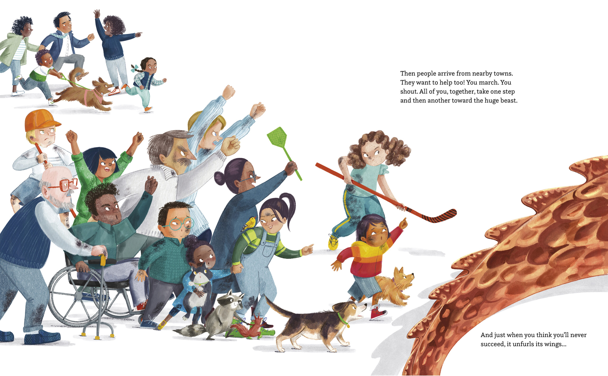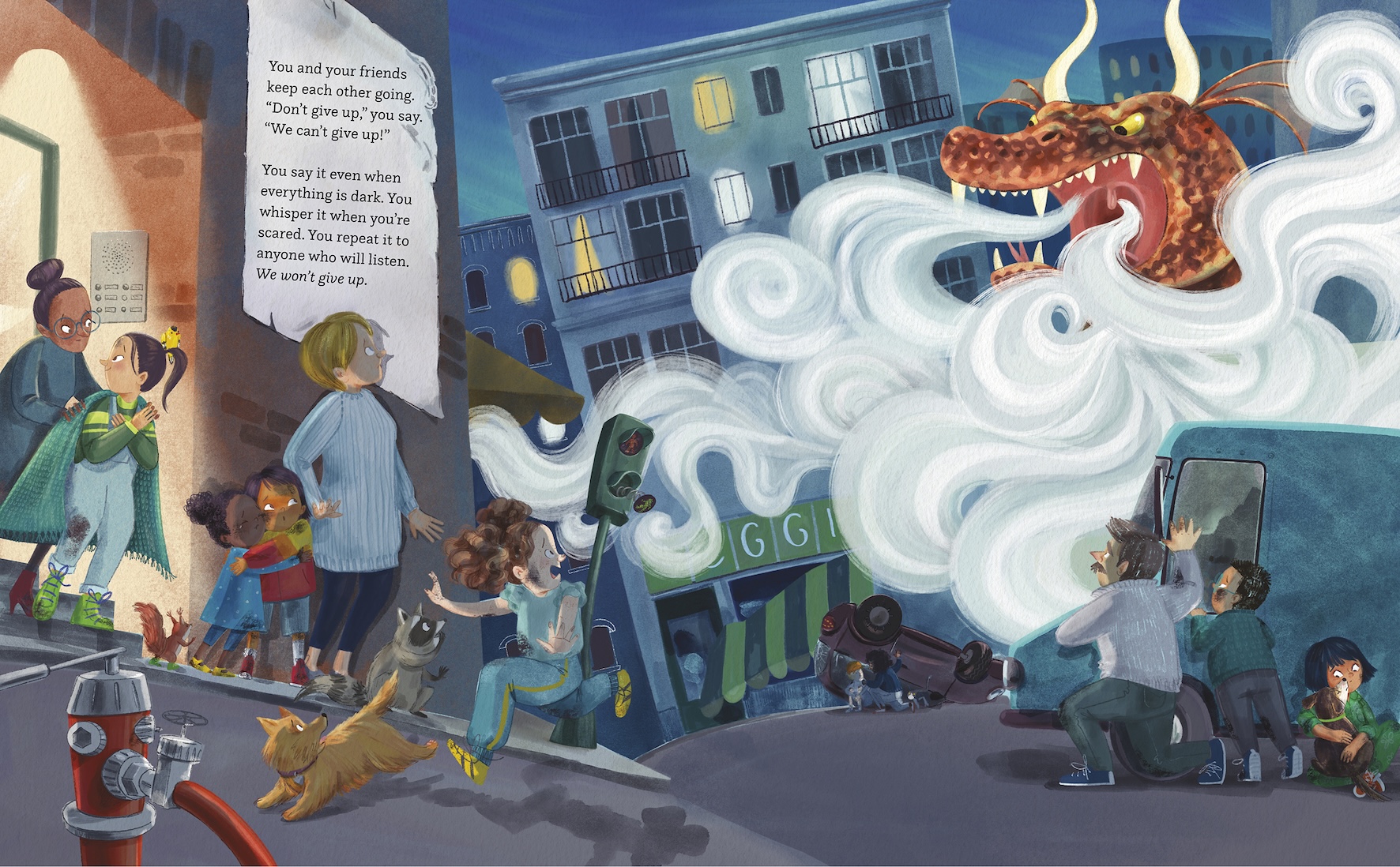 A sweet and powerful story told in second-person about facing your fears (or dragons) and how, when people work together, hope can prevail.